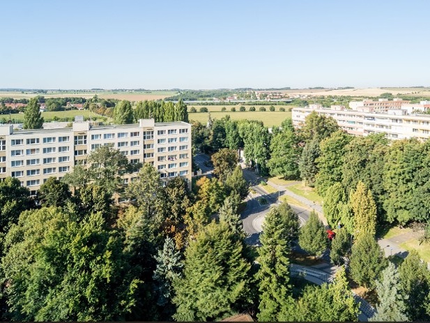 Velkou výhodou je výborná dostupnost – hned vedle domu se nachází zastávka bezplatné MHD, nová cyklostezka a chodník. V okolí najdete kompletní občanskou vybavenost: školy, školky, obchody i nemocnici.